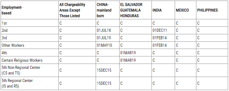 根據(jù)職業(yè)移民排期表B,EB-1、EB-4類別繼續(xù)無(wú)排期,EB-2、EB-3、EB-5類別沒(méi)有前進(jìn),原地踏步。