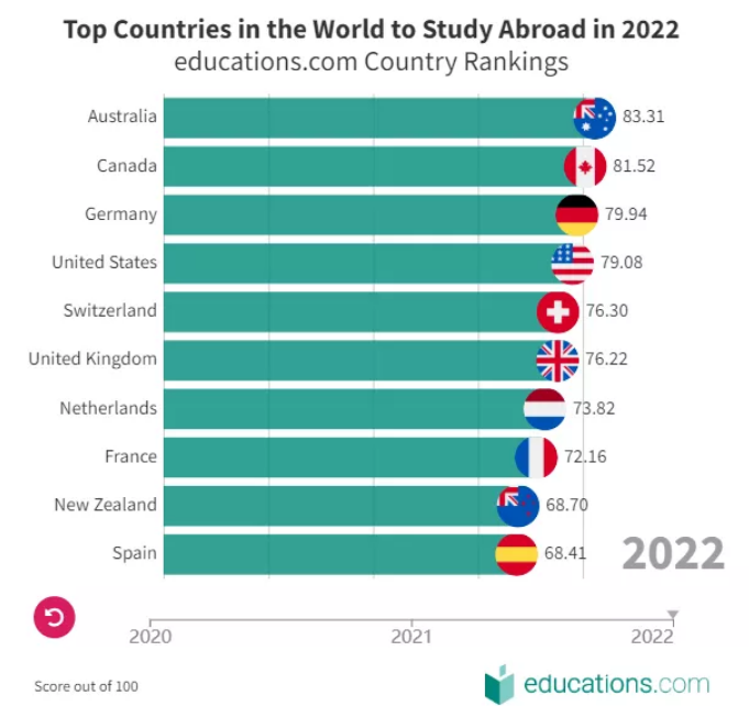 2022世界最佳留學(xué)國(guó)排名公布,英美沒進(jìn)前三,第一竟是它!
