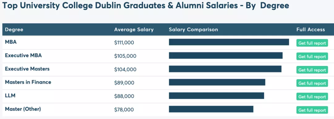 圖為UCD研究生畢業后最能“賺錢”的幾個行業,其中MBA課程(工商管理碩士)的平均工資能夠達到11.1萬美元(約71萬人民幣/年)。