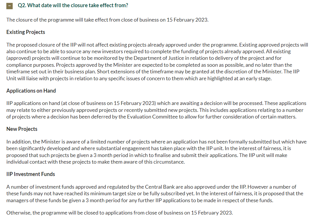 愛(ài)爾蘭IIP關(guān)停補(bǔ)充說(shuō)明關(guān)鍵信息一覽: