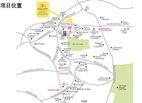 Star residence 位于吉隆坡市中心 Mayang 路和葉觀盛路,步行 15 分鐘即可到達(dá) KLCC 雙子塔,距離吉隆坡國(guó)際機(jī)場(chǎng) 43 分鐘車程,步行兩分鐘到 KLCC 捷運(yùn)站,距 KLCC 國(guó)際會(huì)議中心 10分鐘路程,周圍聚集有眾多高級(jí)商場(chǎng)、寫字樓、俱樂部及大使館等。