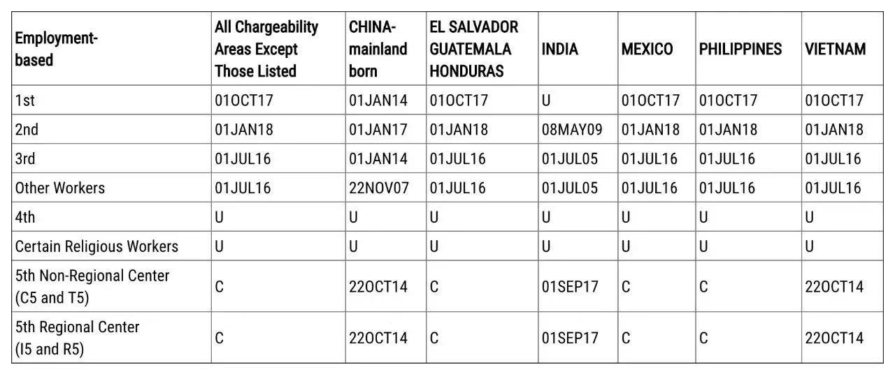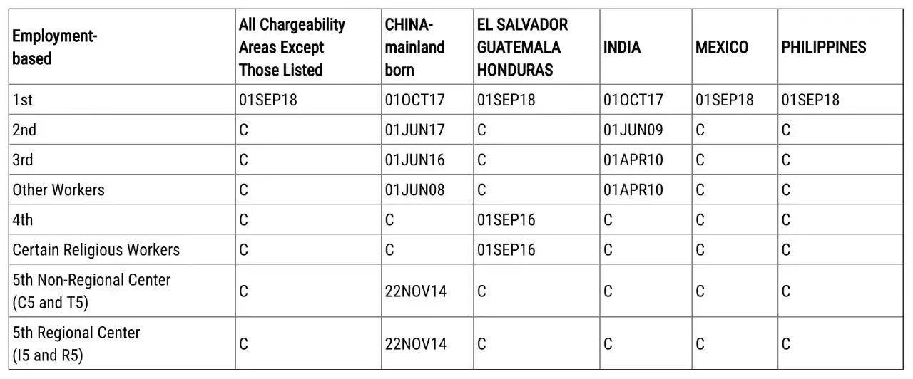 美國9月簽證排期公告出爐
