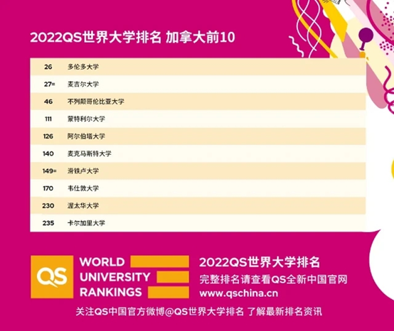其中最為領先的依舊是多倫多大學(第26名),其次為麥吉爾大學,與澳國立大學并列第27名,不列顛哥倫比亞大學位列全球第46名。這也是六年以來,首次有兩所加拿大大學共同進入全球Top30之列。而躍升最快的,是以實習機會豐富著稱的滑鐵盧大學,排名從去年的166位,上升17個名次至今年的149位。