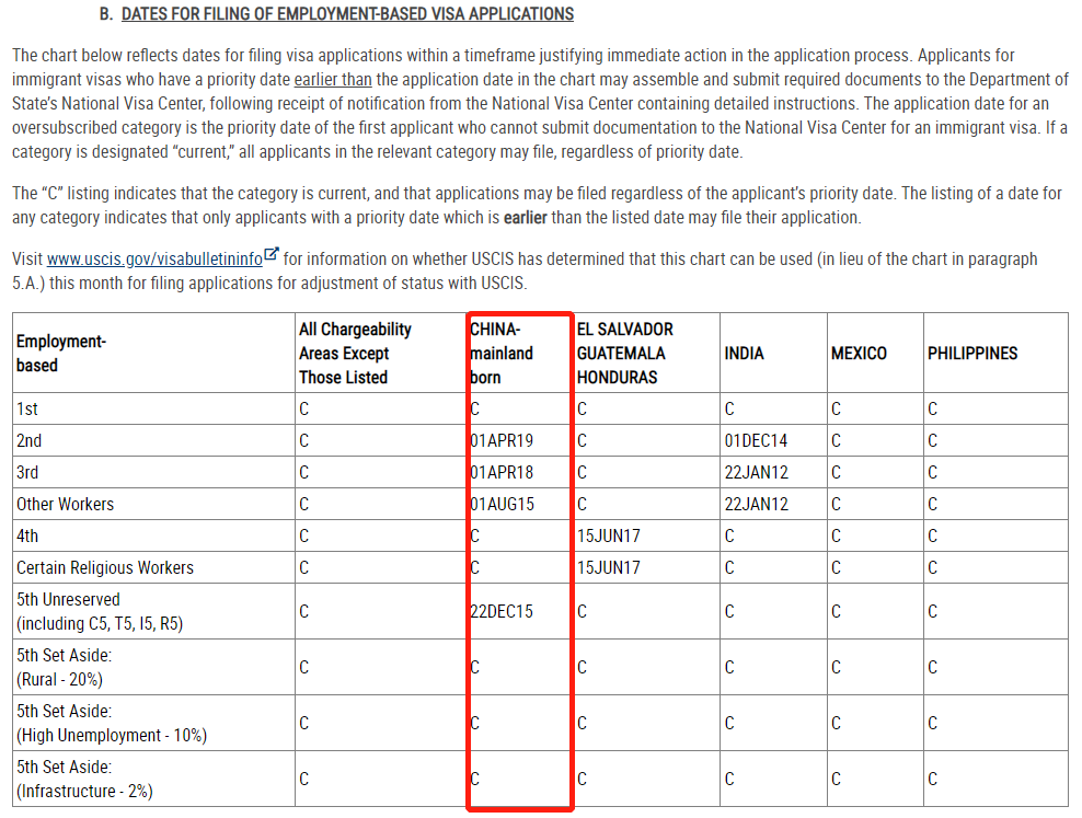 美國國務(wù)院簽證辦公室公布了2022年6月的綠卡移民排期。詳情如下: