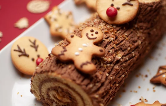 法國新年大餐最后的壓軸甜點(diǎn),一定是樹干蛋糕搭配香檳。那是一種外觀裝飾得特別漂亮的奶油夾心蛋糕,年終節(jié)慶期間每間面包店都會推出。