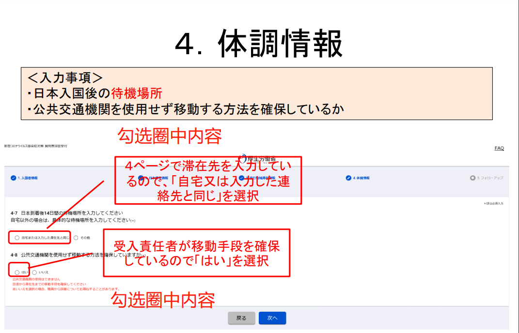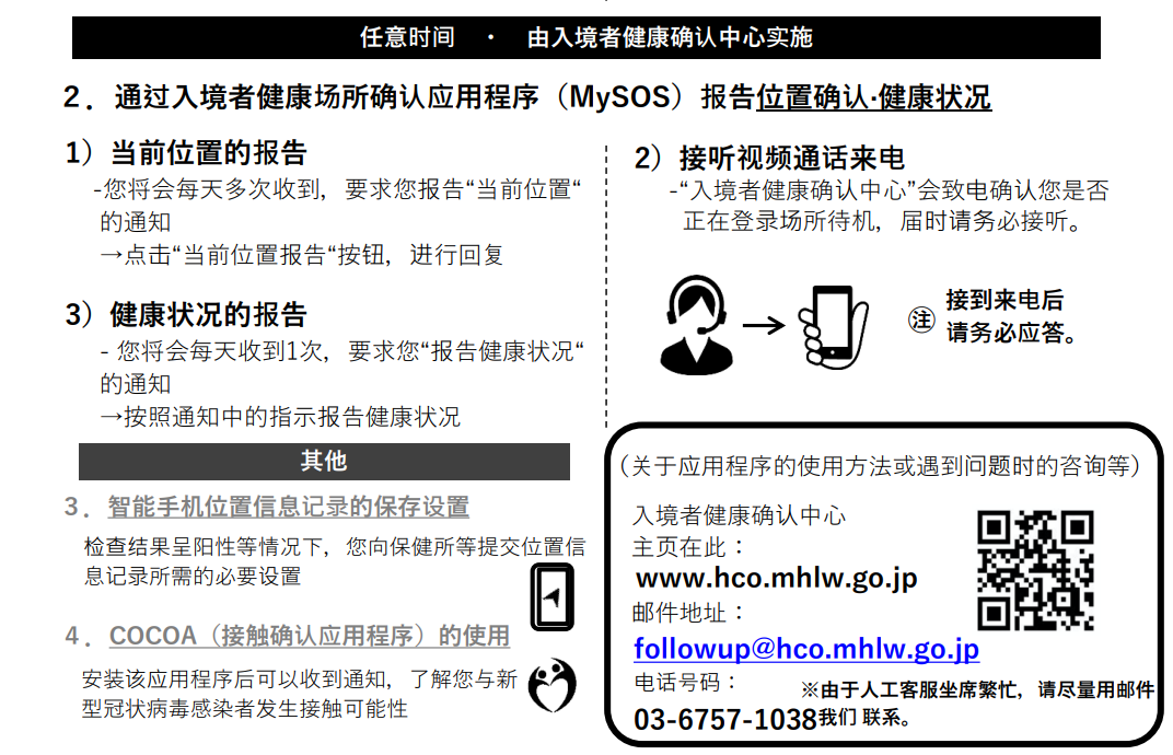 5)通過MySOS,向厚生勞動省“入境者健康確認(rèn)中心”通報健康狀況及所在地。