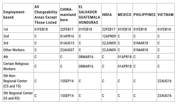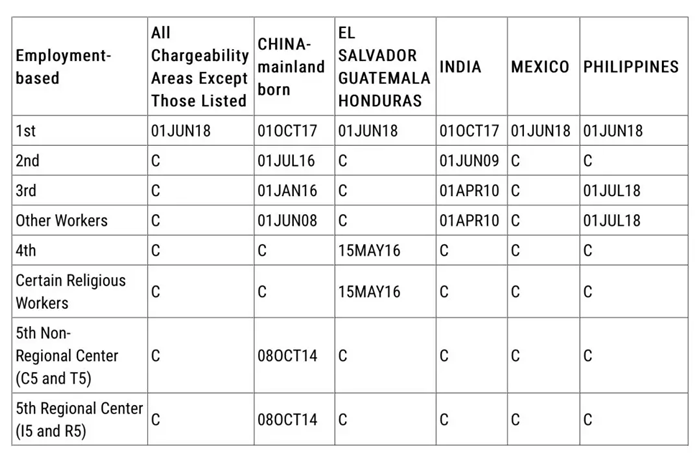 其中,EB-5排期,表A前進(jìn)一周,表B前進(jìn)到10月8日。EB-1排期未動(dòng),EB-2前進(jìn)3個(gè)月,EB-3前進(jìn)3周。