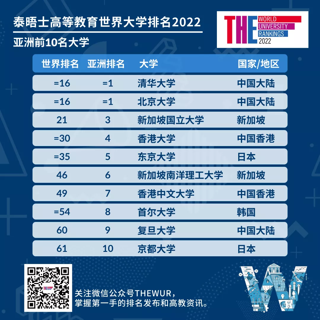 歷史新高!2022 THE世界大學(xué)排名發(fā)布!清北并列亞洲第一!