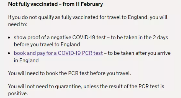 而對(duì)于沒(méi)有在獲批地區(qū)接種英國(guó)認(rèn)證疫苗的旅客,或未完全接種疫苗的旅行者,需要提供: