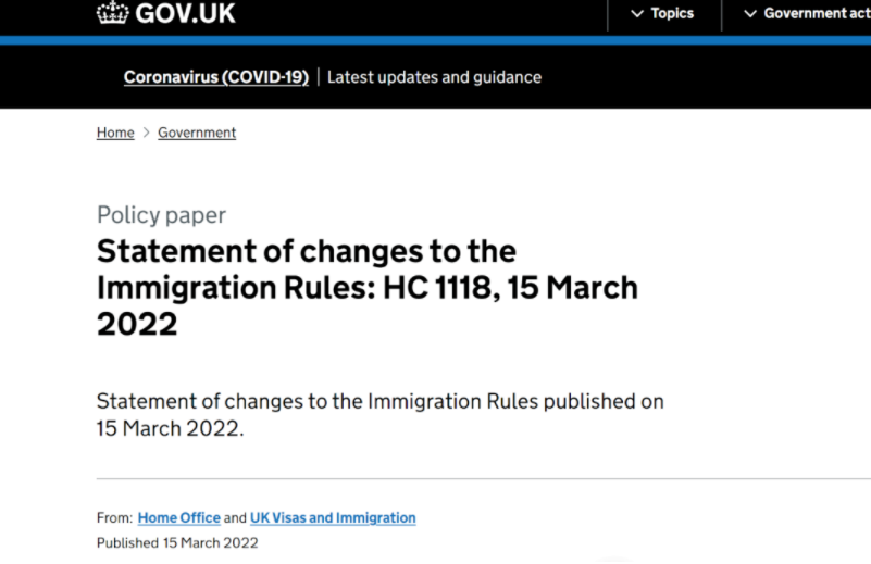 英國內(nèi)政部于當(dāng)?shù)貢r間3月15日突然拋出重磅信息,更新并發(fā)布了移民法修訂通知《Statement of Changes to the Immigration Rules: HC 1118》。根據(jù)這份內(nèi)政部提交給議會的移民法規(guī)修訂通知,多項移民類別政策有重大調(diào)整,其中涉及到大家尤為關(guān)心的英國首席代表簽證類別(Sole Representative Visa)。如果該移民法規(guī)的修訂被議會正式通過,則該類別的簽證申請通道將于2022年4月11日上午9點正式關(guān)閉。