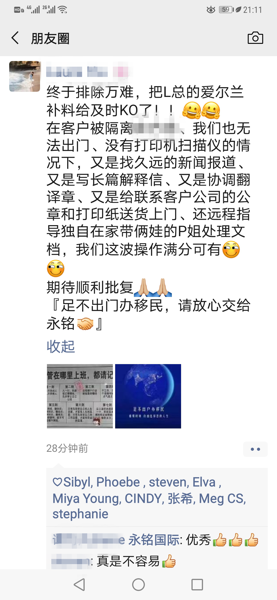 而疫情當前,武漢全面封城,在貴賓客戶及我們的工作人員都無法出門的情況下,我們的文件團隊排除各種困難,全程零接觸幫助客戶順利完成移民補料工作。接下來,就等順利批復,愿客戶早日抵達幸福彼岸。